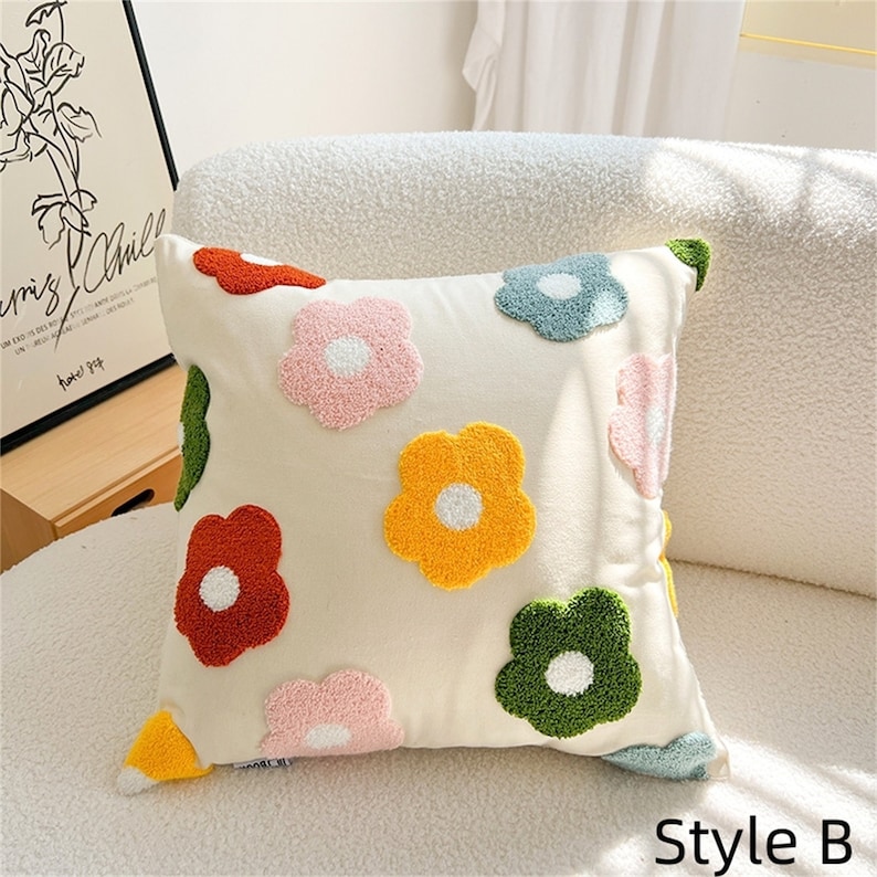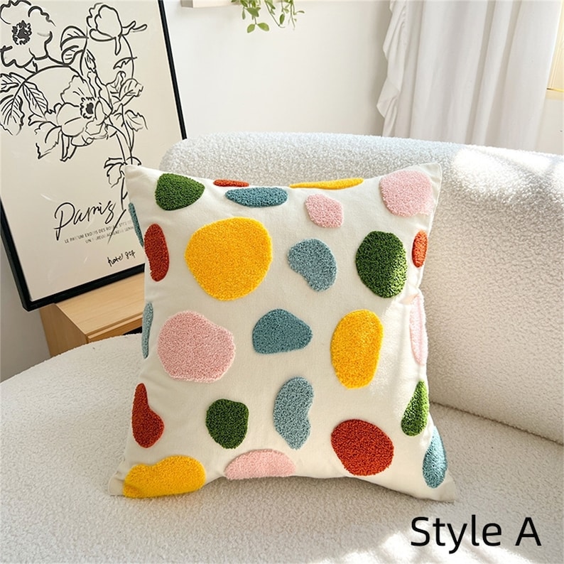 Colorful Tufted Pillow Cover, Modern Throw Pillow Cover, Boho Sofa Couch Cushion Cover 18×18, Cute Pillow Case Gift