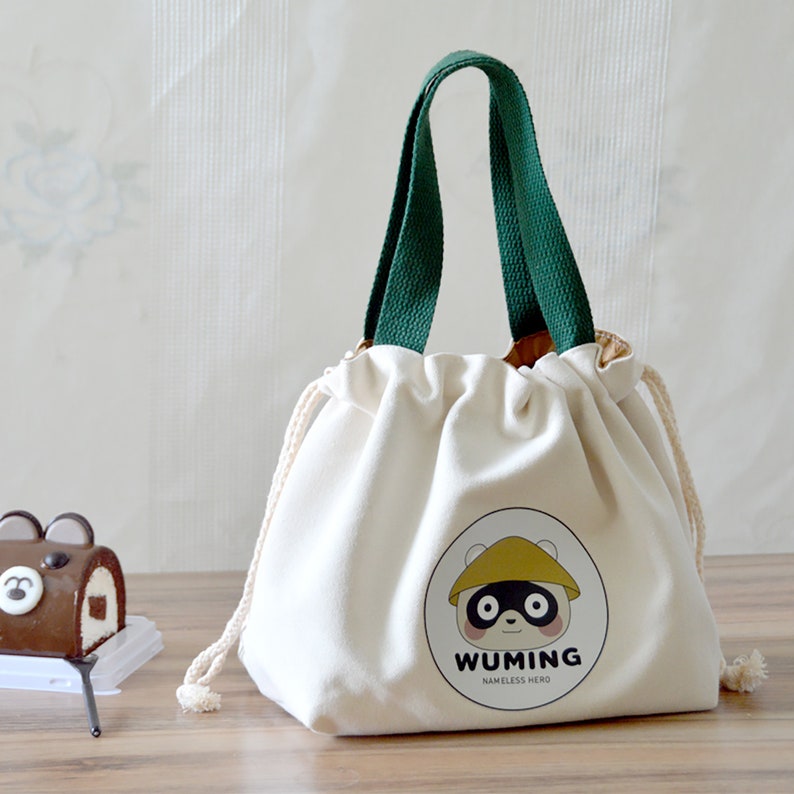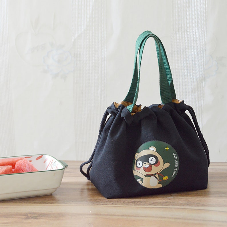 The shape of this lunch bag is very beautiful and cute. It belongs to the Japanese style. It can be used to hold lunch boxes at ordinary times.Double-layer insulation effect. It is very light and convenient. The bag can be reused, is easy to clean, and the food is very safe.