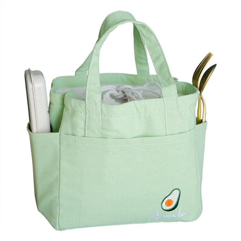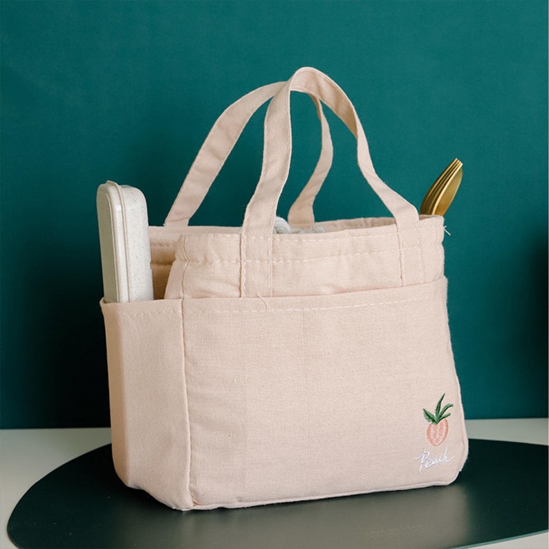The shape of this lunch bag is very beautiful and cute. It can be used to hold lunch boxes at ordinary times. It is very light and convenient. The bag can be reused, is easy to clean, and the food is very safe.
