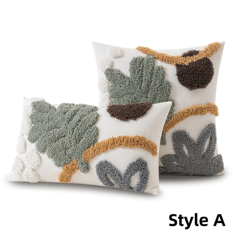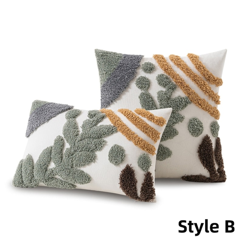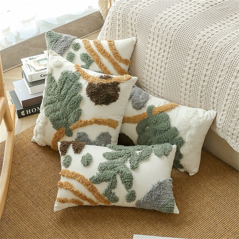 Green Boho Woven Throw Pillow Covers in 4 Styles, Warm Sunshine Pillow Case, Girl, Tree Leaf Abstract Sun Cushion Cover, Plant, Seagull/Cute Boho decor sofa pillowcase/Boho chic home decor