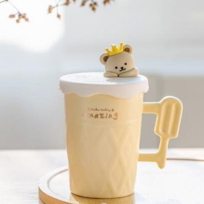 Cute ceramic bear mug with lid in pastel colors | Ceramic & Heat Resistant Mug | Gift for her