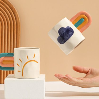 Creative hand-painted mug lovely cloud rainbow milk coffee ceramic cup breakfast mug